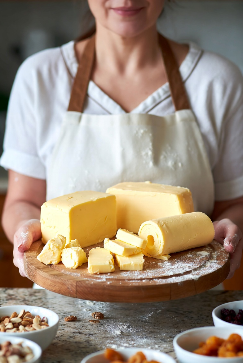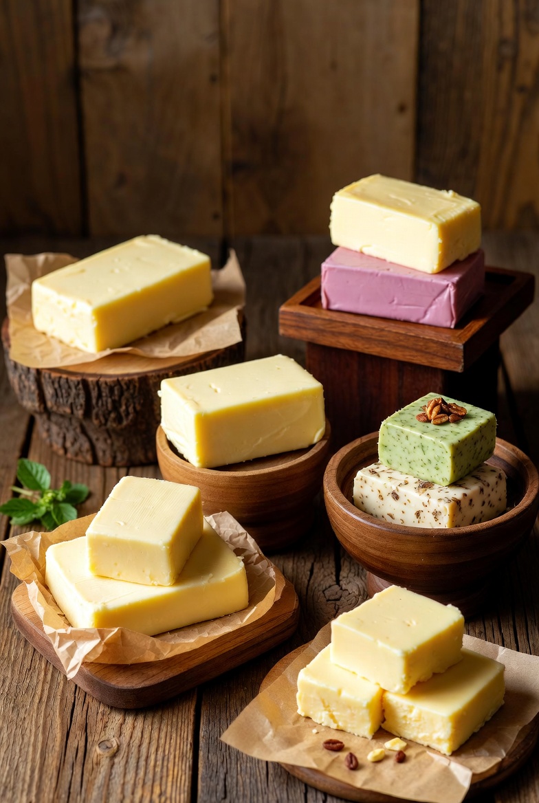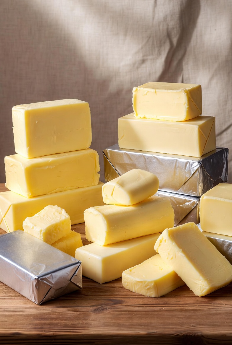 버터는 우유나 크림을 교반하여 유지방을 분리해 만듭니다. 제조 과정이 비교적 간단하며, 유지방 외에도 수분과 유단백질이 함께 포함되어 있습니다.